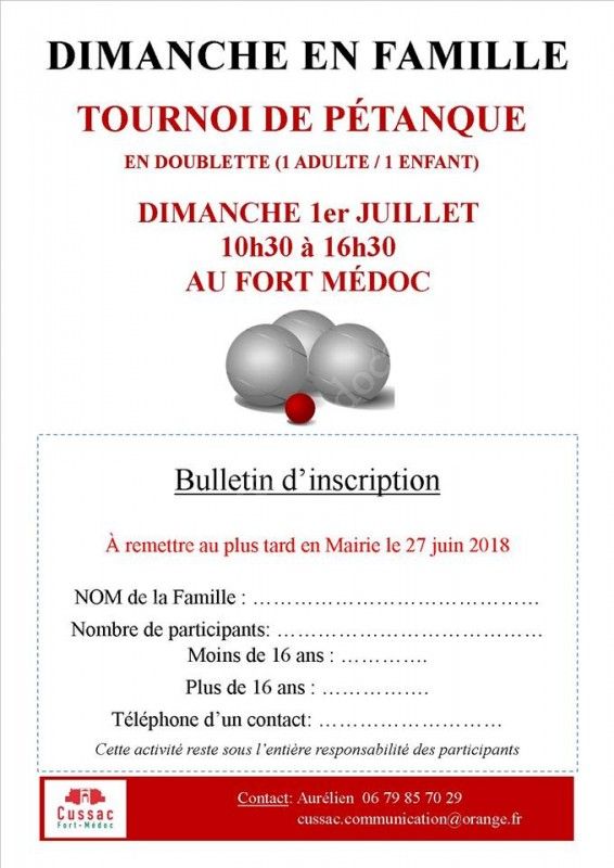Bulletin d'inscription téléchargeable ci-dessous et à remettre en mairie au plus tard le 27 juin 2018.
