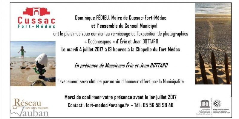 Eric et Jean BOTTARO, vous invitent à leur exposition photo "Père et Fils", qui aura lieu du 4 au 30 juillet au Fort Médoc de CUSSAC : ... "Océanesques"