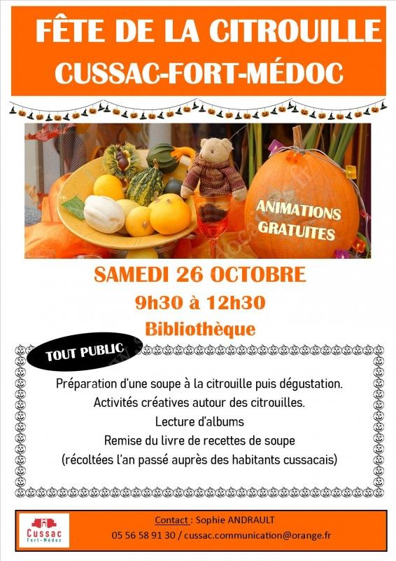 La bibliothèque municipale organise une animation autour de la citrouille le SAMEDI 26 OCTOBRE à la bibliothèque.