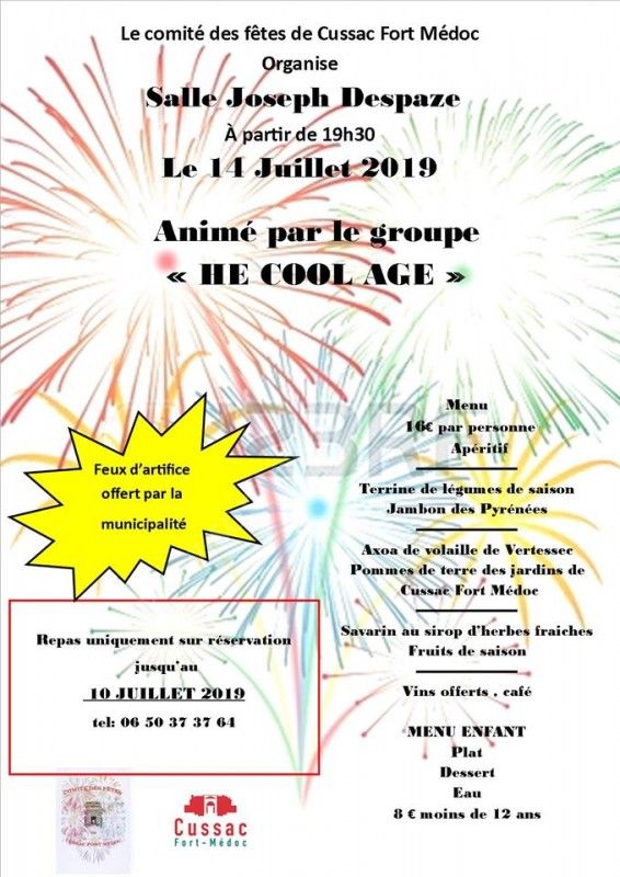 La fête du 14 juillet aura lieu cette année à la salle Joseph Despaze (et non au Fort Médoc).