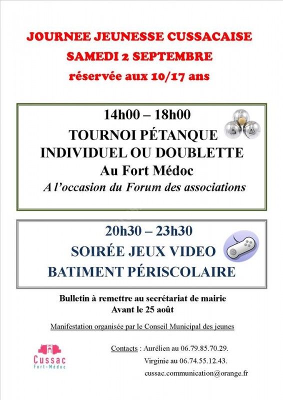 Le Conseil Municipal des Jeunes organise une journée jeunesse pour les 10 - 17 ans le Samedi 2 septembre 2017.