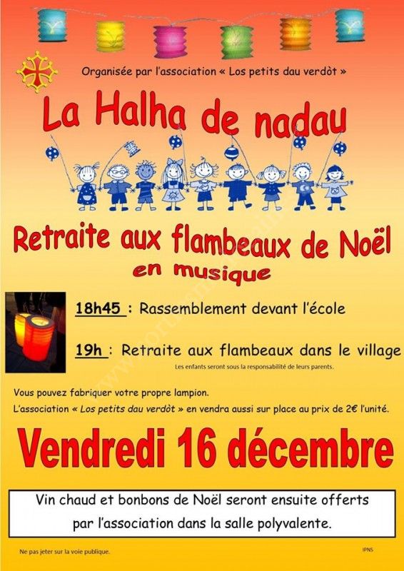 VENDREDI 16 DÉCEMBRE, venez participer avec les classes occitanes de l’école Vauban à « La halha de Nadau » (retraite aux flambeaux de Noël).