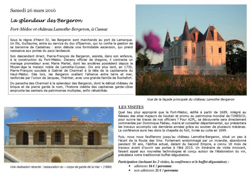 Visite-conférence le Samedi 26 mars 2016 au Fort Médoc, puis visite du château Lamothe-Bergeron par l'association A2PL.
