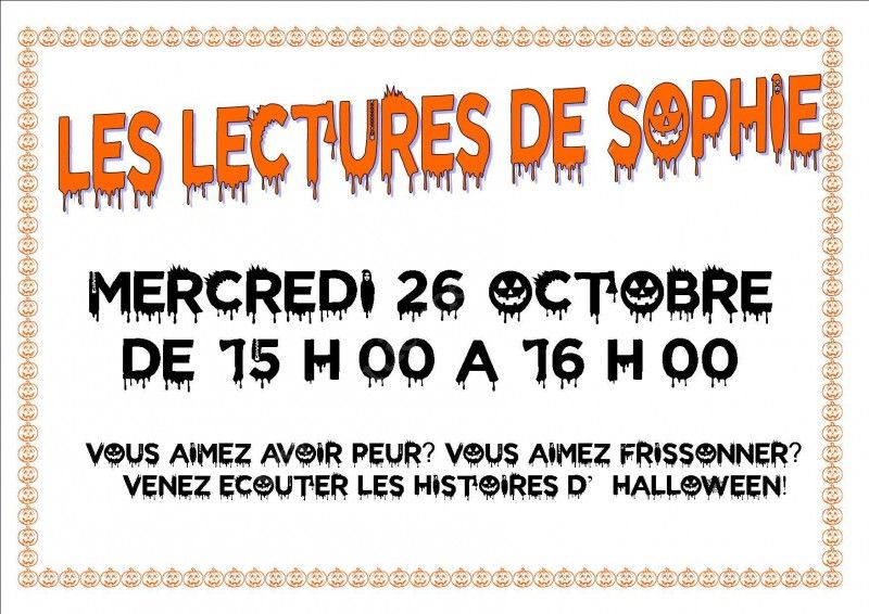 LES LECTURES DE SOPHIE reviennent Mercredi 26 octobre 2016.