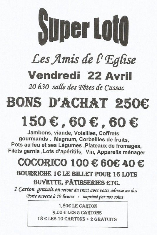 Loto des Amis de l'Eglise de Cussac Fort Médoc.