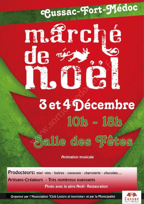 LE MARCHÉ DE NOËL aura lieu samedi 3 & dimanche 4 décembre 2016 à Cussac-Fort-Médoc.