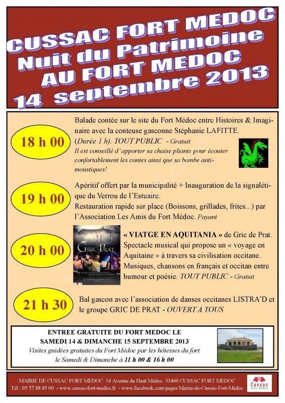 A noter aussi que le Fort Médoc sera libre d'accès le Samedi 14 & Dimanche 15 septembre 2013 et que des visites guidées gratuites auront lieu samedi & dimanche à 11h00 et 16h00.