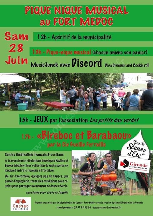 - 13h00 : Pique-nique musical (chacun apporte son panier) avec le groupe DISCORD
