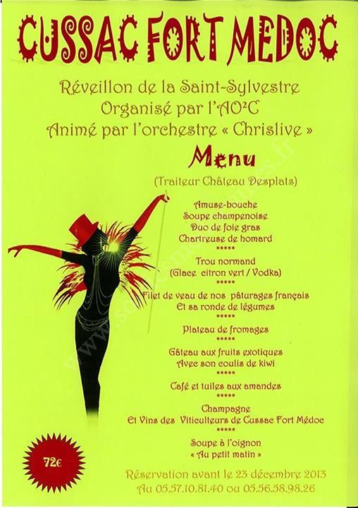 Ce réveillon sera animé par l'orchestre "CHRISLIVE" et le traiteur sera le Château DESPLATS.