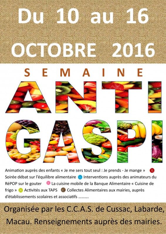 Du 10 au 16 OCTOBRE 2016, SEMAINE ANTI-GASPI !