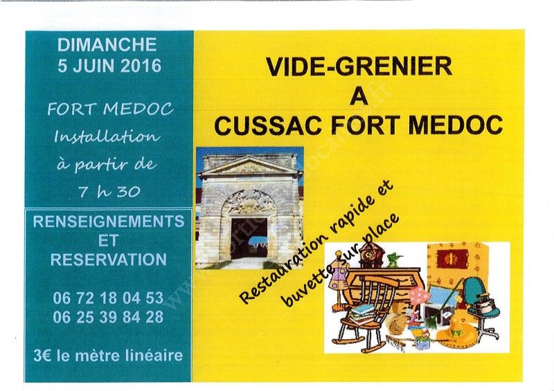 Cette année, le vide-grenier de l'Association Les Amis du Fort Médoc aura lieu le Dimanche 5 juin 2016.