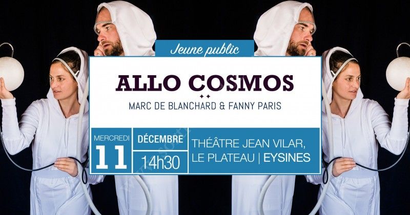 Avec Allo Cosmos, Marc de Blanchard et Fanny Paris livrent un spectacle étonnant : une science-fiction chorégraphiée, mélange de danse, de mapping vidéo, de boucles électroniques et de sons synthétiques des années 80-90. Sur scène, le décor est posé : dans un petit laboratoire étrange, on découvre deux scientifiques dont la mission principale sera de trouver une nouvelle planète habitable pour l’être humain. Au fil de leurs expériences et de leurs explorations qui les mèneront tout droit vers les étoiles, se révèle un univers pop, coloré et décalé, peuplé d’animaux inconnus et de végétaux étranges…