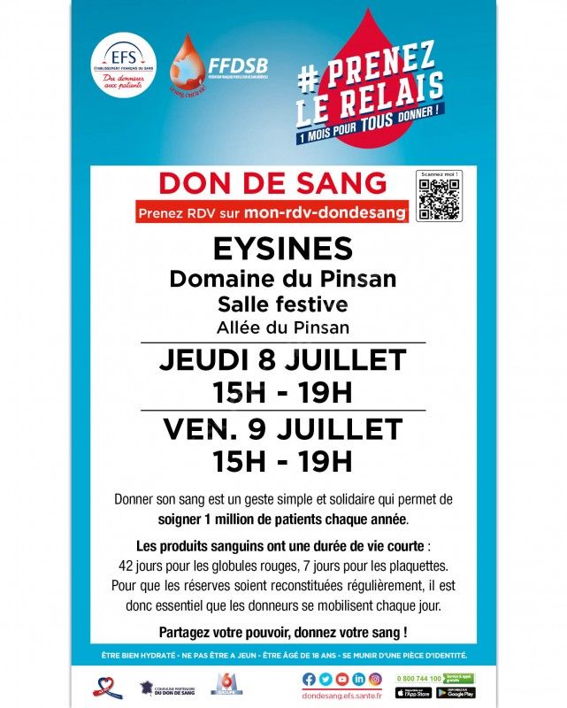 Venez donner votre sang le jeudi 8 et vendredi 9 juillet 2021 à Eysines, vous sauverez ainsi des vies !