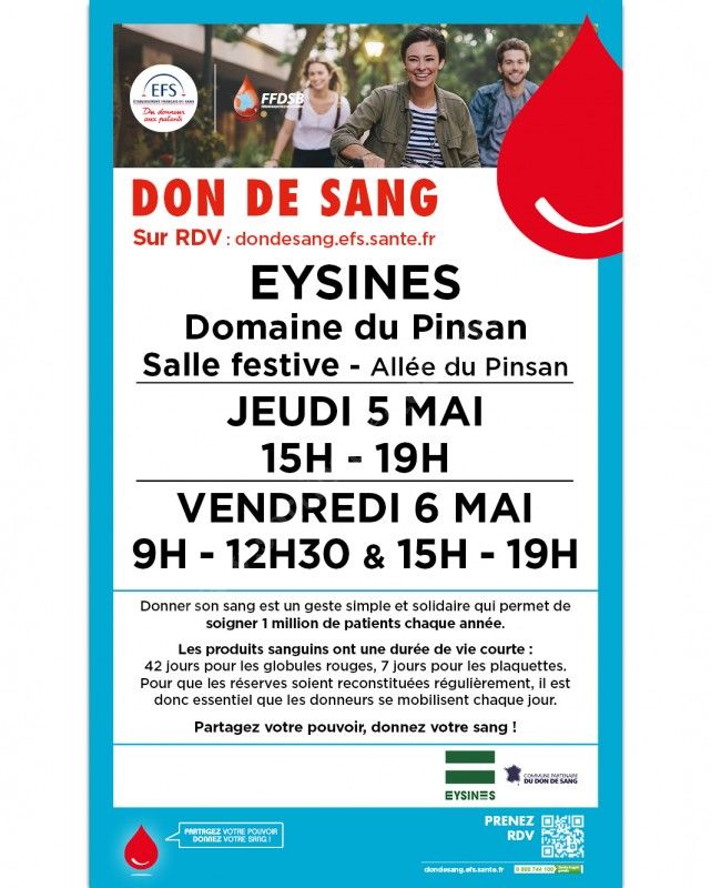 Don de sang le jeudi 5 mai et le vendredi 6 mai 2022 à Eysines.