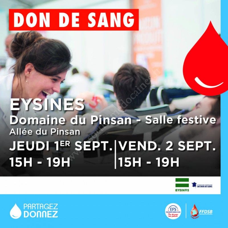 Collecte de sang le jeudi 1er et le vendredi 2 septembre 2022 à Eysines de 15h00 à 19h00.