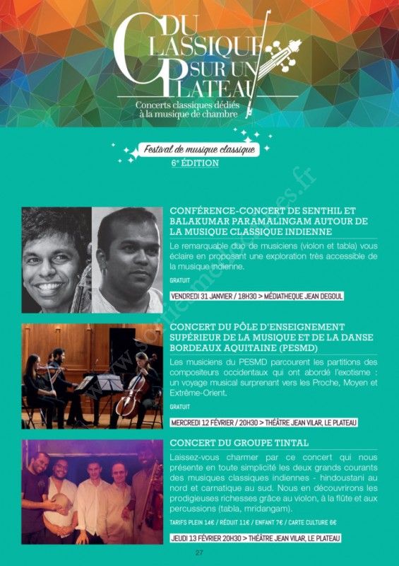 * 31 janvier 2020 : Conférence-concert de Senthil et Balakumar Paramalingam