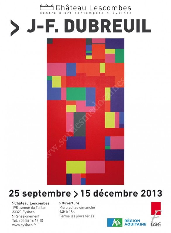 Jean-François Dubreuil est un artiste singulier qui a mis au point un protocole de création très rigoureux et immuable. Pour la réalisation d’un tableau, il s’appuie sur la mise en page de magazines ou de quotidiens de la presse écrite. Le nombre de pages et le format des journaux déterminent les surfaces. Ces rectangles sont méticuleusement peints en aplats de couleur. Le choix de chacune d’elle suit un code très précis. L’artifice opératoire initial permet de renouveler à l’infini les entrées dans l’expérience picturale.