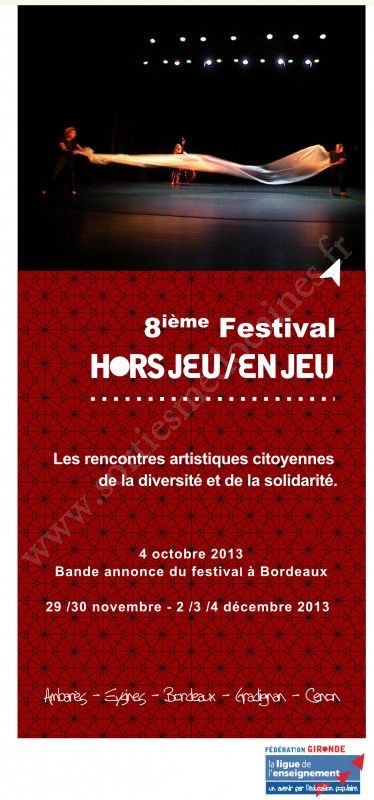 Dans le cadre du Festival « HORS JEU / EN JEU », Rencontres artistiques et citoyennes de la diversité et de la solidarité organisées par la Ligue de l’Enseignement 33