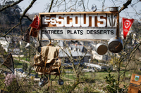 Une chanson pour tous, tous pour une chanson ! Ils arrivent de loin, ont vu de la lumière et se sont imposés ! Dans notre espace banquet et pique-nique, les Scouts du Bœuf à 1000 Pattes ont posé leur barda et font cantine ; au menu des chansons à déguster ! Le public choisit parmi la soixantaine de chansons issues du patrimoine populaire. Mais les Scouts décident. Si besoin, ils organisent des jeux pour départager les choix. S’organisent alors les tables et les chœurs, accompagnés et animés par les scouts musiciens. Oubliez les fausses notes, poussez la chansonnette, vous pouvez même agiter vos gambettes ! Ça va guincher sévère avec cette chorale participative et décalée.