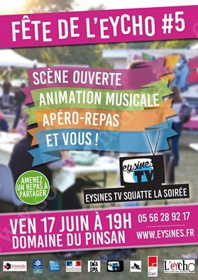 Mise à jour du 16/06/16 : L'Eycho Centre Social d'Eysines, ses salariés, son Conseil d'Administration, son Conseil de Participation et d'Initiatives et ses bénévoles ont le regret de vous informer de l'annulation de la Fête de l'Eycho #5 du vendredi 17 juin 19h au Pinsan.