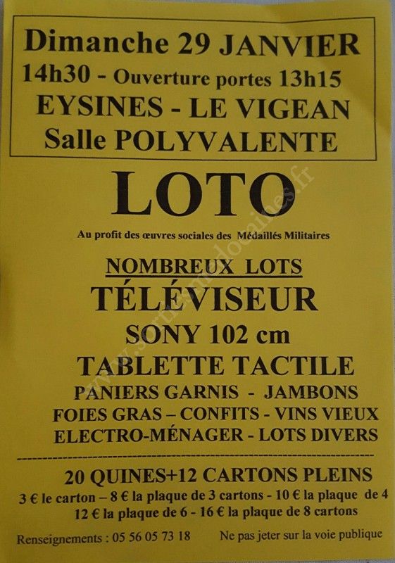 Loto au profit des oeuvres sociales des Medaillés Militaires.