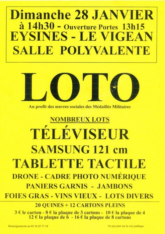 LOTO au profit des oeuvres sociales de la Société Nationale d' Entraide de la Médaille Militaire