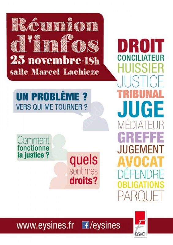Pour vous aider à mieux comprendre le fonctionnement de la justice et mieux connaître vos droits, nous vous proposons une réunion d'information sur ce vaste sujet.