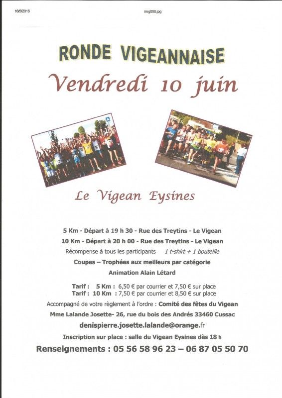 - 5 Km - Départ à 19h30 - Rue des Treytins - Le Vigean