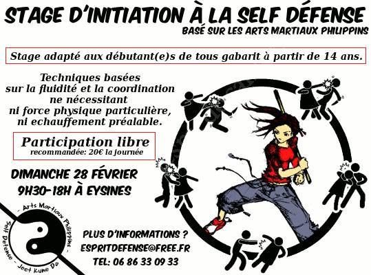 Stage d'Initiation à la Self Défense, basé sur las arts martiaux Philippins.