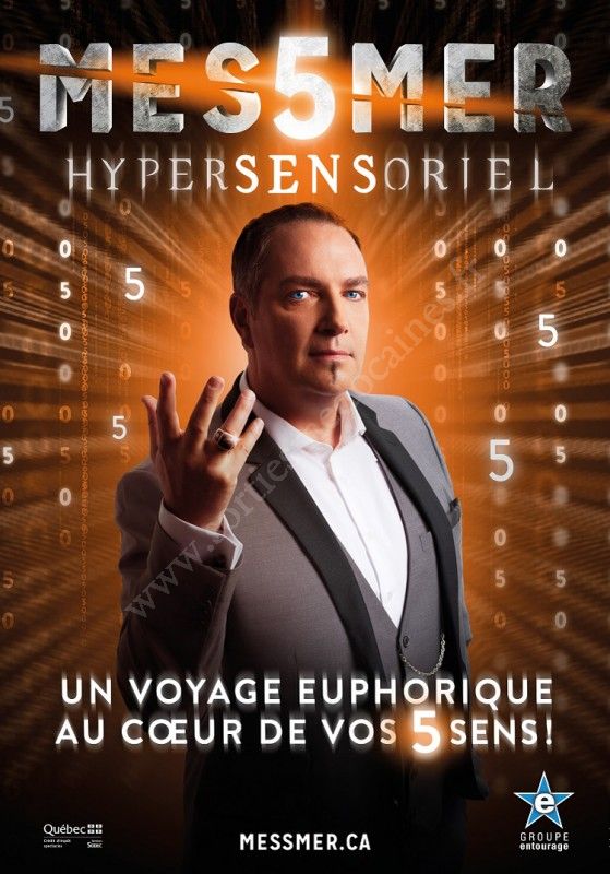 Un voyage euphorique au cœur de vos 5 sens ! Le fascinateur Messmer est l’une des grandes références en hypnose et magnétisme à travers le monde. Détenteur du record mondial d’hypnose collective et avec plus d’un million de billets vendus à son actif, Messmer est de retour pour présenter son tout nouveau spectacle, Hypersensoriel. Sommité dans l’art de la fascination, Messmer repousse à nouveau les limites du subconscient, en mettant cette fois à profit nos cinq sens. Quels sont leurs secrets, leurs pouvoirs insoupçonnés ? Peut-on les décupler, les altérer ? Et si nous avions un 6e sens qui sommeille en nous ? Après plusieurs années à étudier le cerveau humain pour amplifier ses propriétés, Messmer vous invite cette fois à stimuler et éveiller vos sens à travers des expériences et des aventures des plus étonnantes et divertissantes. Hypersensoriel propose un grand rendez-vous interactif et euphorique, mettant à profit technologie et réalité virtuelle, alors que Messmer fait une fois de plus la démonstration de l’incroyable pouvoir du subconscient. « Chacun de nos sens a des pouvoirs extraordinaires que nous méconnaissons et qui nous permettent d’appréhender notre environnement de façon bien plus précise qu’on ne le pense. » Messmer.