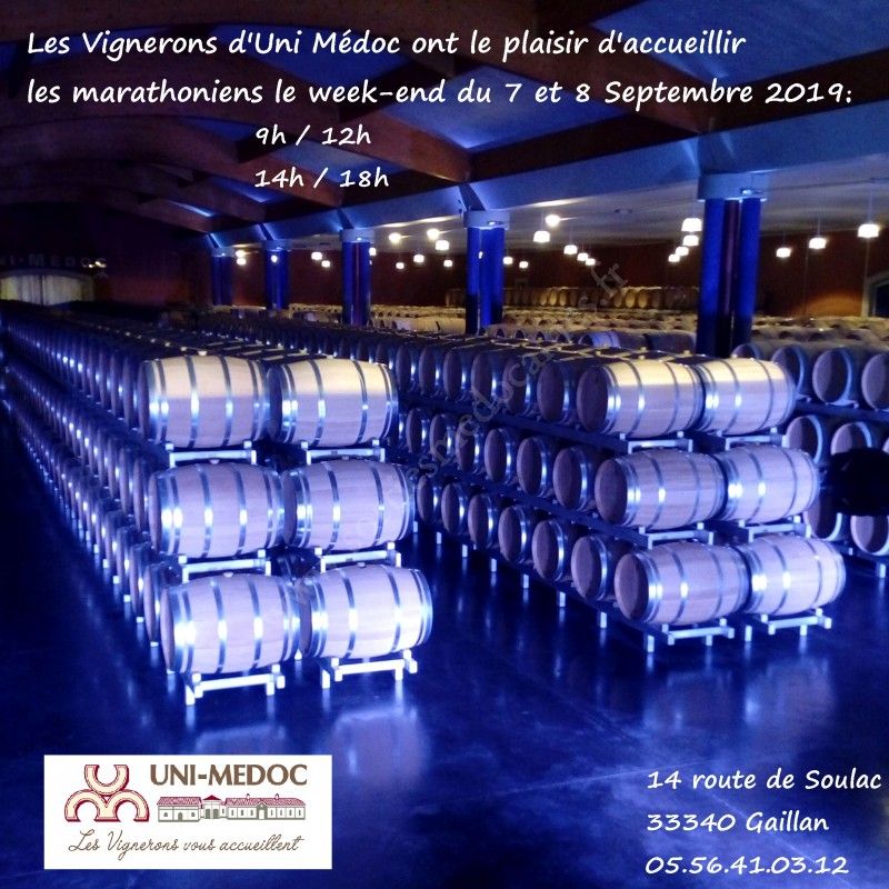 A l'occasion du marathon du Médoc, les Vignerons d'Uni Médoc ont la joie de vous accueillir dans leur cave.