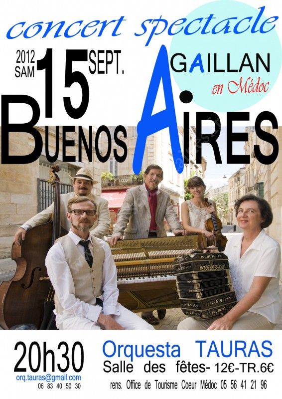 Concert - Spectacle , un parcours dans la ville de Buenos Aires par l'ensemble "TAURAS" , quintet de Tango et un couple de danseurs.
