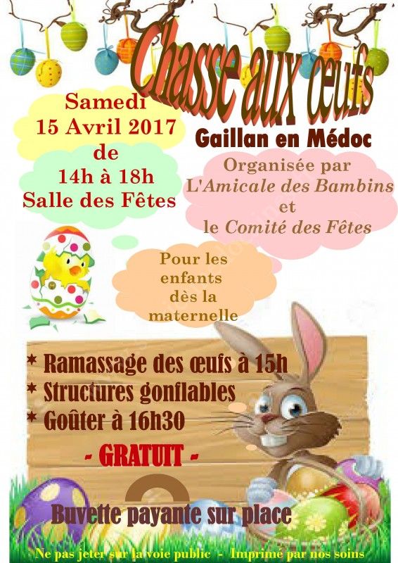 Chasse à l'oeufs gratuite avec structures gonflables, gouter offert pour les enfants.