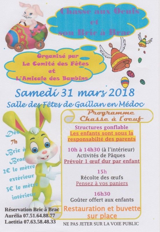 Chasse aux oeufs et son bric à brac organisés par l'Amicale des Bambins Gaillanais et le Comité des Fêtes.