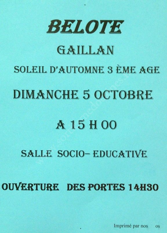 Organisé par Soleil d'Automne - 3ème âge.