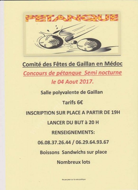 Concours de pétanque semi nocturne organisé par le Comité des Fêtes.