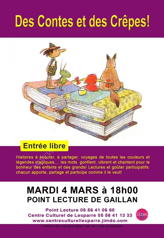 - Tél. : Centre Culturel : 05.56.41.13.33 ou Point Leture : 05.56.41.06.68