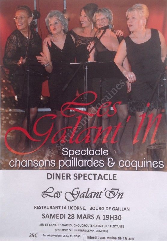 Dîner-spectacle animé par Les Galant'In (groupe musical chansons paillardes et coquines).
