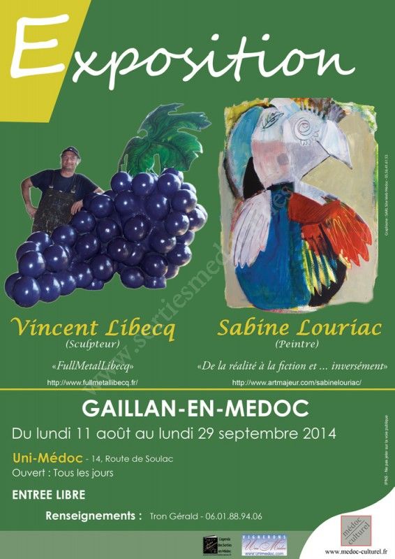 L'association Médoc Culturel organise l'exposition de Sabine Louriac (Peintre) et Vincent Libecq (Sculpteur métallique) à la Cave Uni-Médoc à Gaillan.