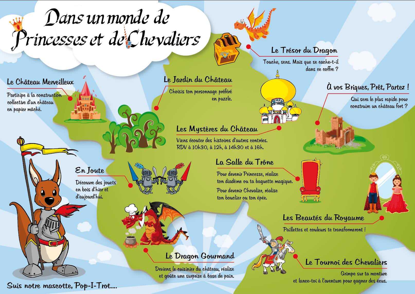 Ateliers reproductibles à la maision (créations, dégustations, jeux, éveil sensoriel, ...) - 11h30 et 15h15 : le Pop I Club vous propse deux représentations avec les Princesses et les Chevalliers du Monde accompagnés de notre mascotte Pop-I-Trot. Entrez dans la danse !!
