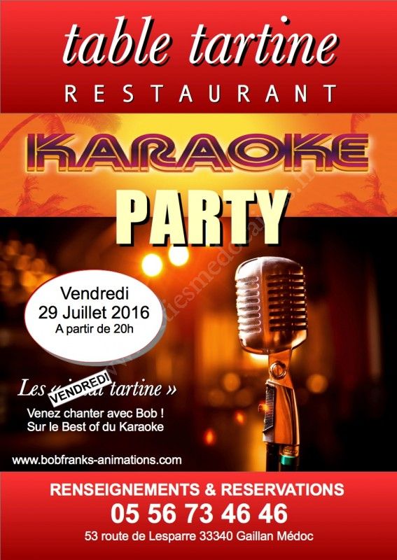 Réservez dès a présent votre "Soirée Karaoké" organisée par Table Tartine et présentée par Bob Franks.