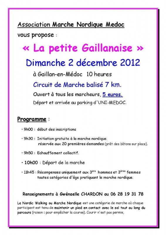 Proposée par l'Association Marche Nordique Médoc, ouvert à tous.