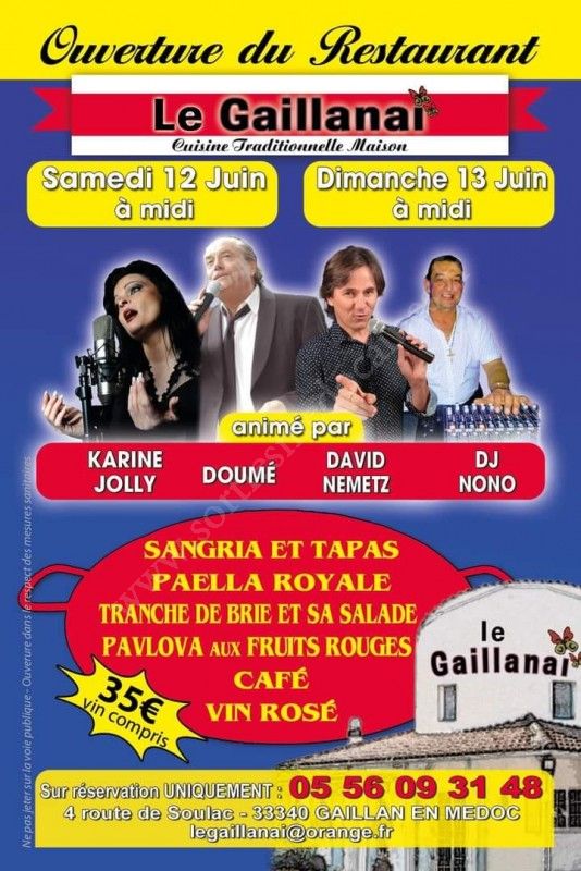 Pour son ouverture, le restaurant le Gaillanaï vous propose deux déjeuners festifs, animés par les chanteurs et DJ Stars du Médoc :