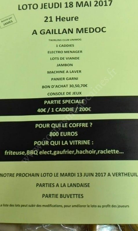 Beaucoup de lots dont : caddies ,bons d'achat ,machine à laver ,elctro ménager....