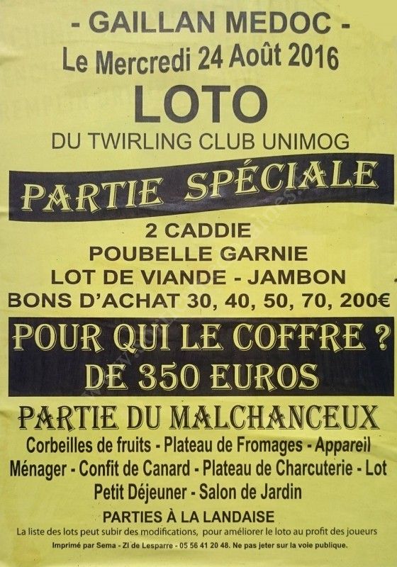 La liste des lots peut subir des modifications, pour améliorer le loto au profit des joueurs.