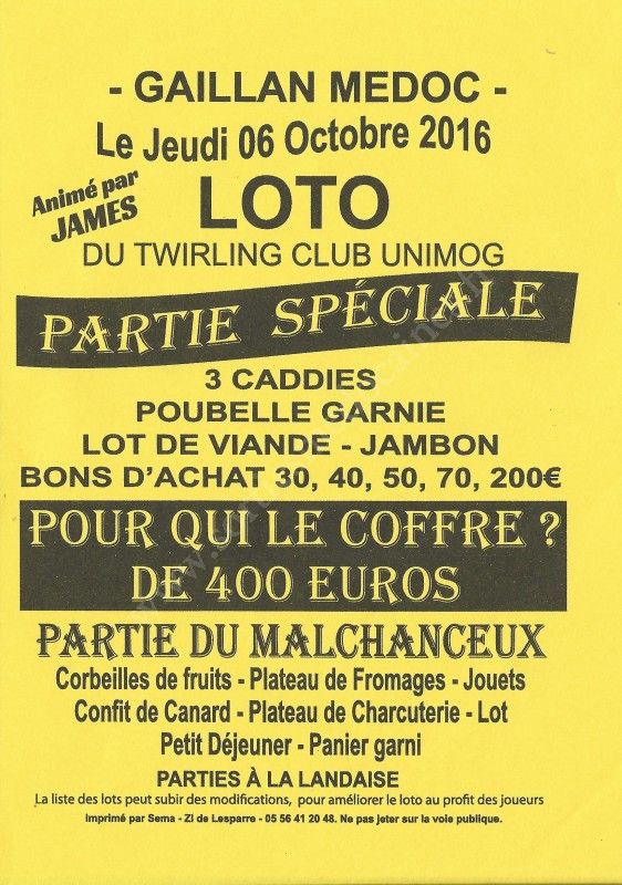 La liste des lots peut subir des modifications, pour améliorer le loto au profit des joueurs.