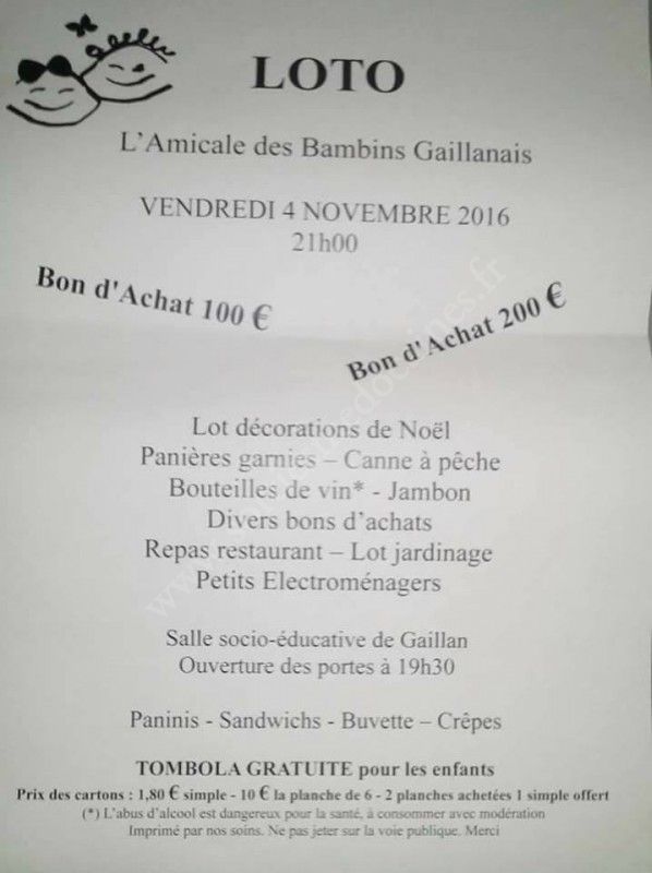 Loto organisé par l'Amicale des Bambins Gaillanais.