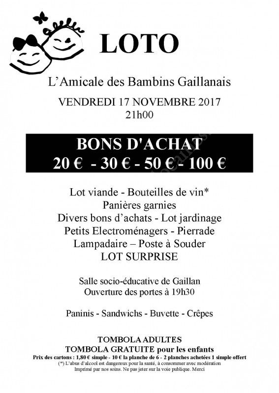 Loto des écoles de Gaillan en Médoc, afin de financer le noël des écoles.