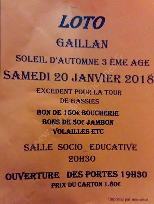 Loto organisé par Soleil d'Automne 3ème âge.