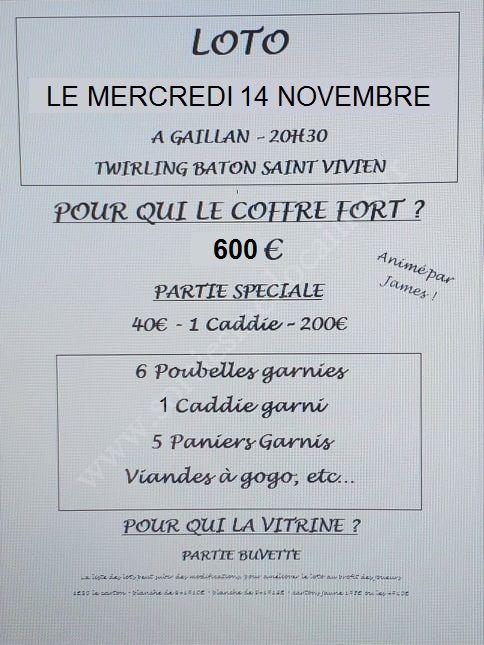 Loto organisé par le Twirling Bâton Saint-Vivien et animé par James.